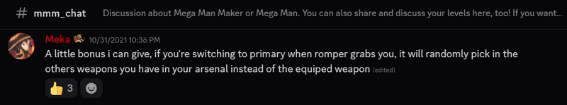 | current | 03:50, 26 April 2025 | 1,017 × 189 (39 KB) | Midas Magnezone (talk | contribs) | Meka explains that a Romper will steal weapon energy from random secondary weapons if the primary weapon is equipped |