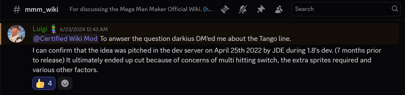 | current | 11:34, 19 May 2025 | 1,410 × 332 (81 KB) | Midas Magnezone (talk | contribs) | Luigi explains that Tango's interactions with Astro Buttons was scrapped due to several issues [https://discord.com/channels/328222878489247744/444942912690585603/1254235307235217472 Link to message] |