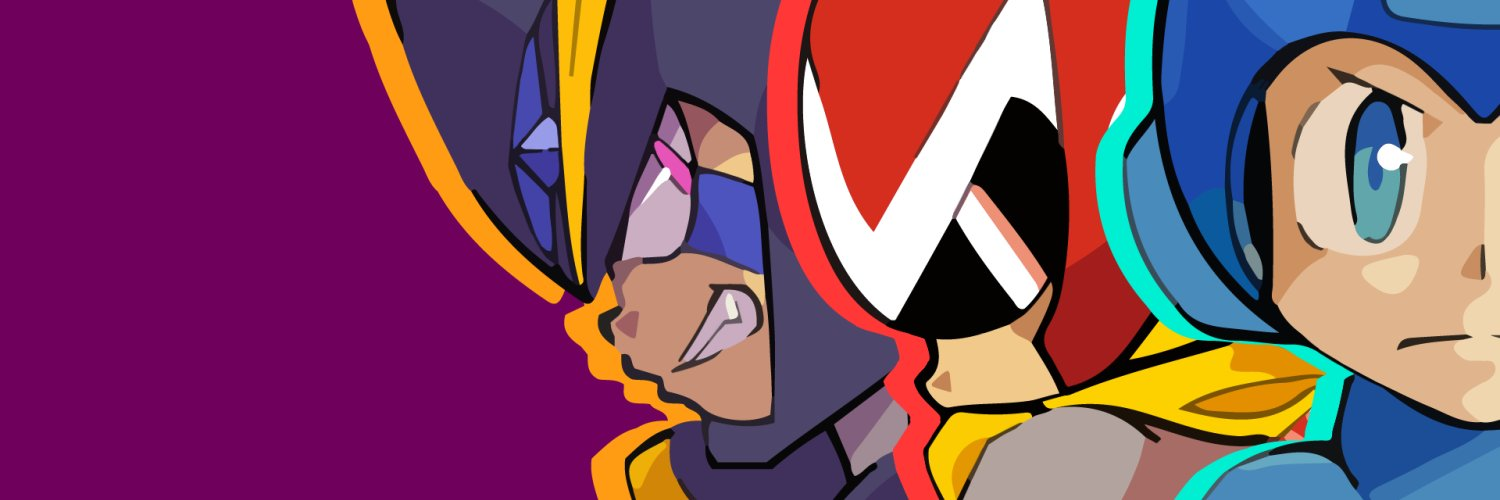 Twitter banner for Mega Man Maker featuring Bass, Proto Man, and Mega Man (from left to right).